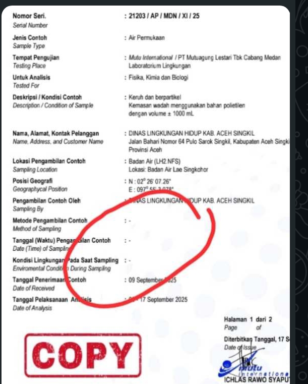 Meski begitu, hasil lab ini menuai sorotan tajam Yayasan Advokasi Rakyat Aceh (YARA). Ketua YARA Aceh Singkil, Kaya Alim, menilai uji laboratorium janggal karena sampel diambil lima jam setelah insiden, tanpa pemeriksaan terhadap ikan yang mati.