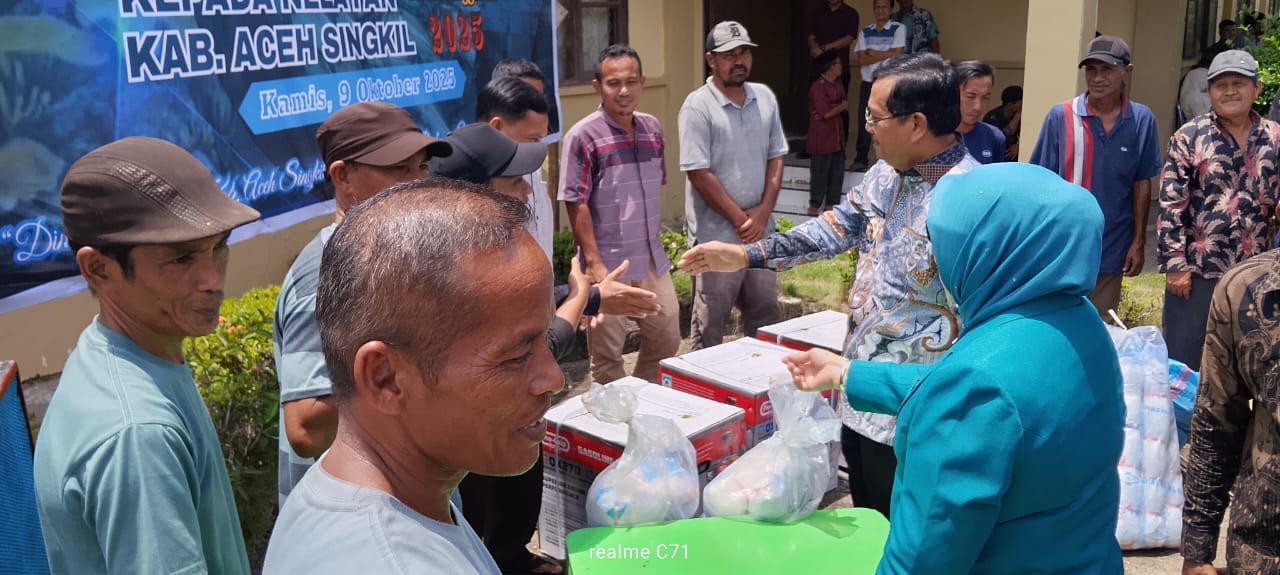 Penyerahan bantuan tersebut berlangsung di halaman Kantor Dinas Perikanan Aceh Singkil, Kamis (9/10/2025), dan dihadiri puluhan nelayan penerima manfaat.