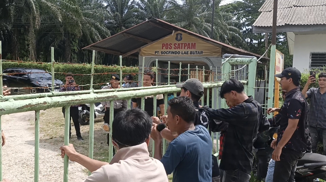 ”Kami bukan penonton di tanah sendiri! Kami meminta PT Socfindo segera membuka lapangan kerja seluas-luasnya bagi pemuda setempat!” teriak salah satu orator di tengah gemuruh massa yang mengguncang pagar kantor perusahaan.